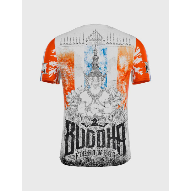 Eigenschaften: Buddha Thailand Trainingsshirt aus 100 % hochwertigem Polyester. Das Polyester wurde so behandelt, dass es keine Gerüche annimmt und wasch- und trainingsbeständig ist. Hochwertiger Sublimationsdruck für Langlebigkeit und Widerstandsfähigkeit. Kurze Ärmel und Rundhalsausschnitt. Attraktive Designs. Leicht und sehr bequem. Farbe: Weiß mit roten und blauen Markendetails.